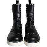Dolce & Gabbana Black Leather Combat Mid Calf Boots Shoes