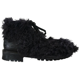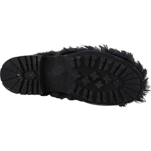 Dolce & Gabbana Black Leather Combat Shearling Boots Shoes