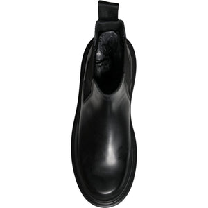 Dolce & Gabbana Black Leather Slip On Stretch Trekking Boots Shoes