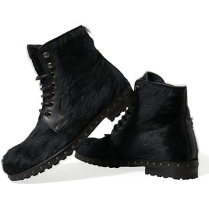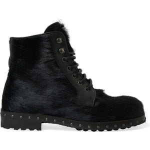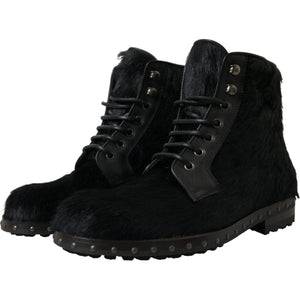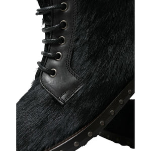 Dolce & Gabbana Black Pony Style Leather Mid Calf Boots Shoes