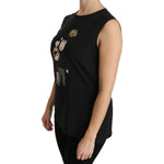 Dolce & Gabbana Black Silk DG Family Crystal Sleeveless Top
