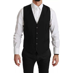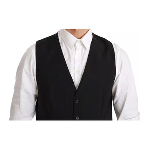 Dolce & Gabbana Black Stretch Waistcoat Formal Dress Wool Vest
