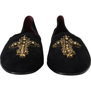 Dolce & Gabbana Black Suede Gold Cross Slip On Loafers Shoes