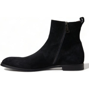 Dolce & Gabbana Black Suede Leather Mid Calf Men Boots Shoes