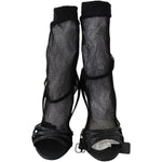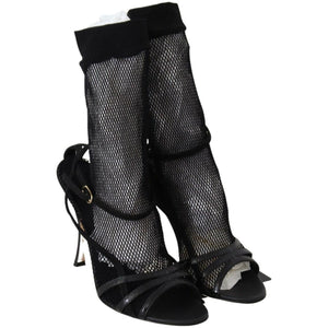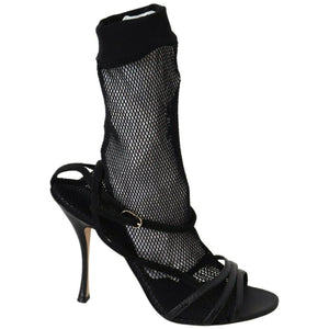 Gorgeous brand new with tags, 100% Authentic Dolce & Gabbana black stiletto heeled sandals, complementing them with a thin mesh sock made of soft textiles. Narrow criss-cross straps are crafted from velvety suede and patent leather.