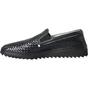 Dolce & Gabbana Black Woven Buffalo Leather Men Loafers Shoes