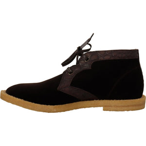 Dolce & Gabbana Brown Velvet Exotic Leather Boots