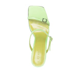 Flick 90mm mules from BY FAR featuring apple green, calf leather, strap detailing, open toe, double buckle fastening, slip-on style, branded heel counter and high sculpted heel. Flick leather mules Size and Fit - Heel 3,9 in / 10 cm