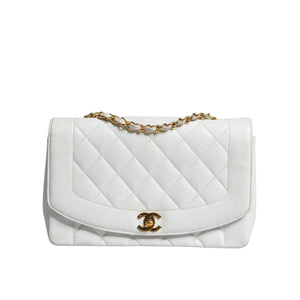 Chanel White Medium Classic DIANA Shoulder Bag Gold Plated Purse