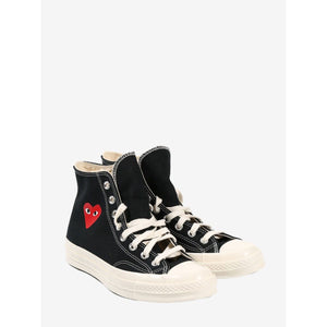 black canvas front lace-up fastening branded heel counter contrasting heel counter signature heart print rubber sole round toe Chuck 70 sneakers Size and Fit - Heel 1,2 in / 3 cm; Platform 1 in / 2,5 cm