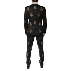 Dolce & Gabbana Black Bee Crown Embroidery 2 Piece Suit