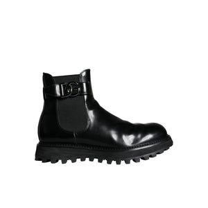 Dolce & Gabbana Black Belted DG Logo Men Chelsea Boots Shoes
