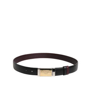 • Dolce & Gabbana Black Brown Leather Metal Buckle Reversible Belt