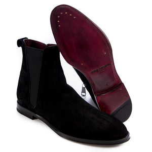 Make a powerful statement with these Dolce & Gabbana black suede calfskin ankle boots. Designed to command attention and exude sophistication, each step reveals impeccable Italian craftsmanship. The convenient zipper pairs with an elastic band for a snug fit, while the daring red leather interior adds a hidden splash of color. A true staple for the modern gentleman’s wardrobe, these boots complete any bold ensemble with a sleek and stylish edge.