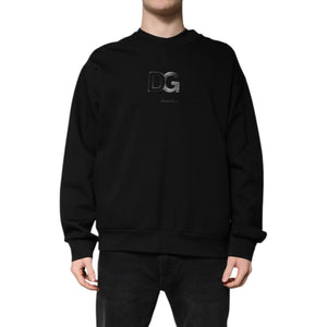 Dolce & Gabbana Black Cotton DG Crew Neck Pullover Sweater
