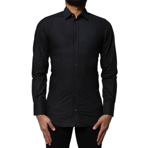Dolce & Gabbana Black Cotton GOLD Long Sleeves Dress Shirt