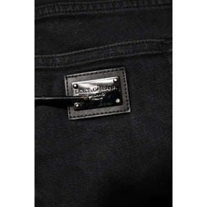Dolce & Gabbana Black Cotton Logo Plaque Slim Fit Denim Jeans
