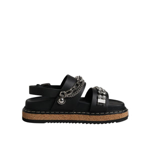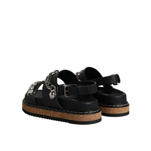 Dolce & Gabbana Black Crystal Embellish Strap Sandals Shoes