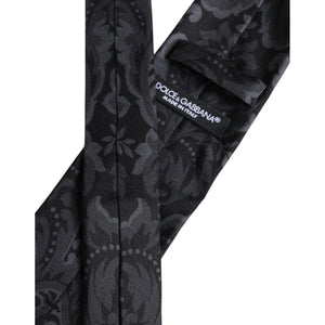 Dolce & Gabbana Black Gray Flower Print Adjustable Necktie Tie