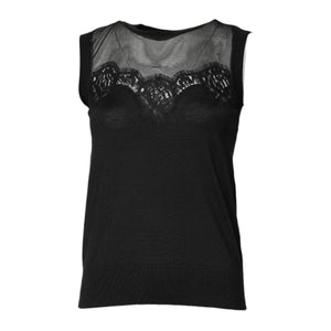 • Dolce & Gabbana Black Lace Sheer Crew Neck Sleeveless Top