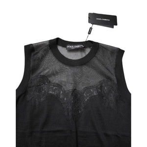 Dolce & Gabbana Black Lace Sheer Crew Neck Sleeveless Top