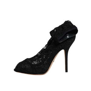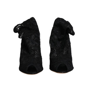 • Dolce & Gabbana Black Lace Stretch Heels Mid Calf Boots Shoes