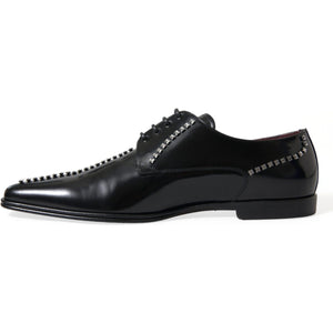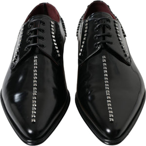 Dolce & Gabbana Black Leather Crystal Dress Formal Shoes