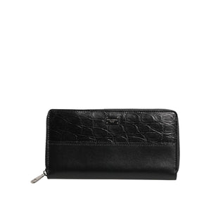 • Dolce & Gabbana Black Leather DG Plaque Zip Around Continental Wallet