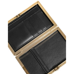 Dolce & Gabbana Black Leather Gold Frame Clutch Evening Party Purse Bag