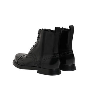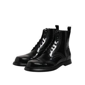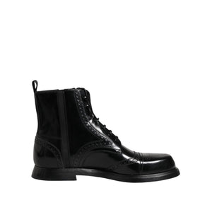 Dolce & Gabbana Black Leather Lace Up Mid Calf Boots Shoes