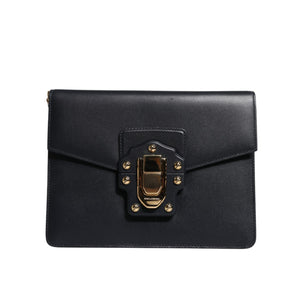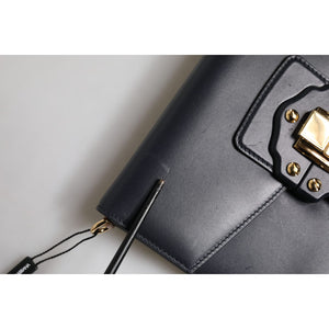 Dolce & Gabbana Black Leather Logo Gold Crossbody Purse Bag