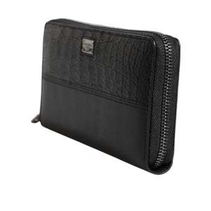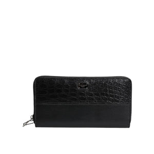 • Dolce & Gabbana Black Leather Logo Plaque Zip Around Continental Wallet
