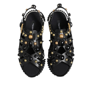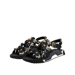 Dolce & Gabbana Black Leather Studded Ankle Strap Sandals Shoes