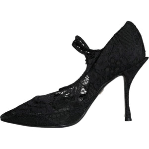 Dolce & Gabbana Black Mary Jane Pumps Lace Crystals Heels Shoes