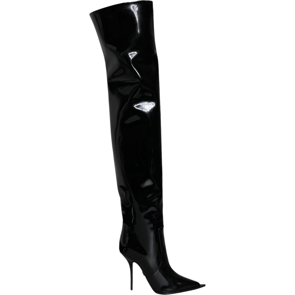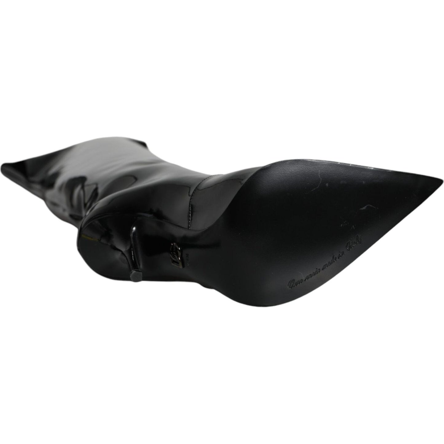 Dolce & Gabbana Black Patent Leather Knee High Boots Shoes