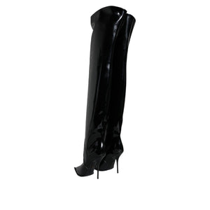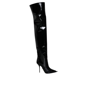 Dolce & Gabbana Black Patent Leather Knee High Boots Shoes
