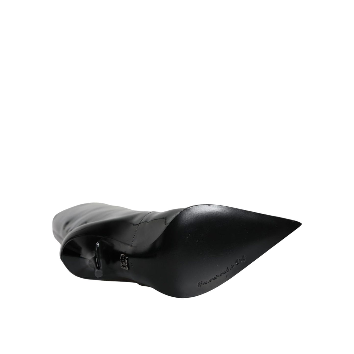 Dolce & Gabbana Black Patent Leather Mid Calf Boots Shoes