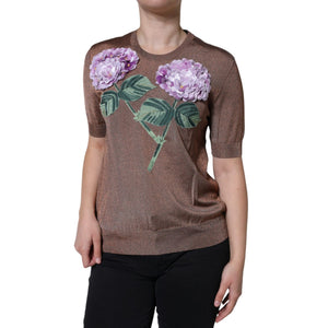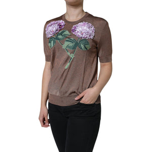 Dolce & Gabbana Brown Floral Applique Viscose Short Sleeve Top