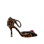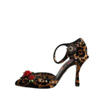 Dolce & Gabbana Brown Leopard Crystal Roses Pumps Shoes