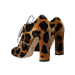 Dolce & Gabbana Brown Leopard Hair Lace Up Booties Shoes
