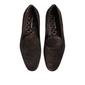 Dolce & Gabbana Brown Velvet Leather Slip On Loafers Shoes