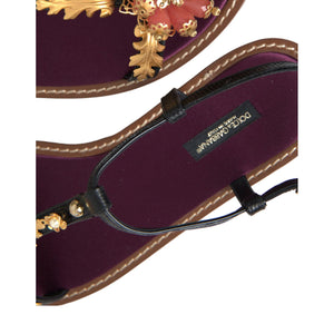 Dolce & Gabbana Black Crystal Gold Sandals Leather Shoes