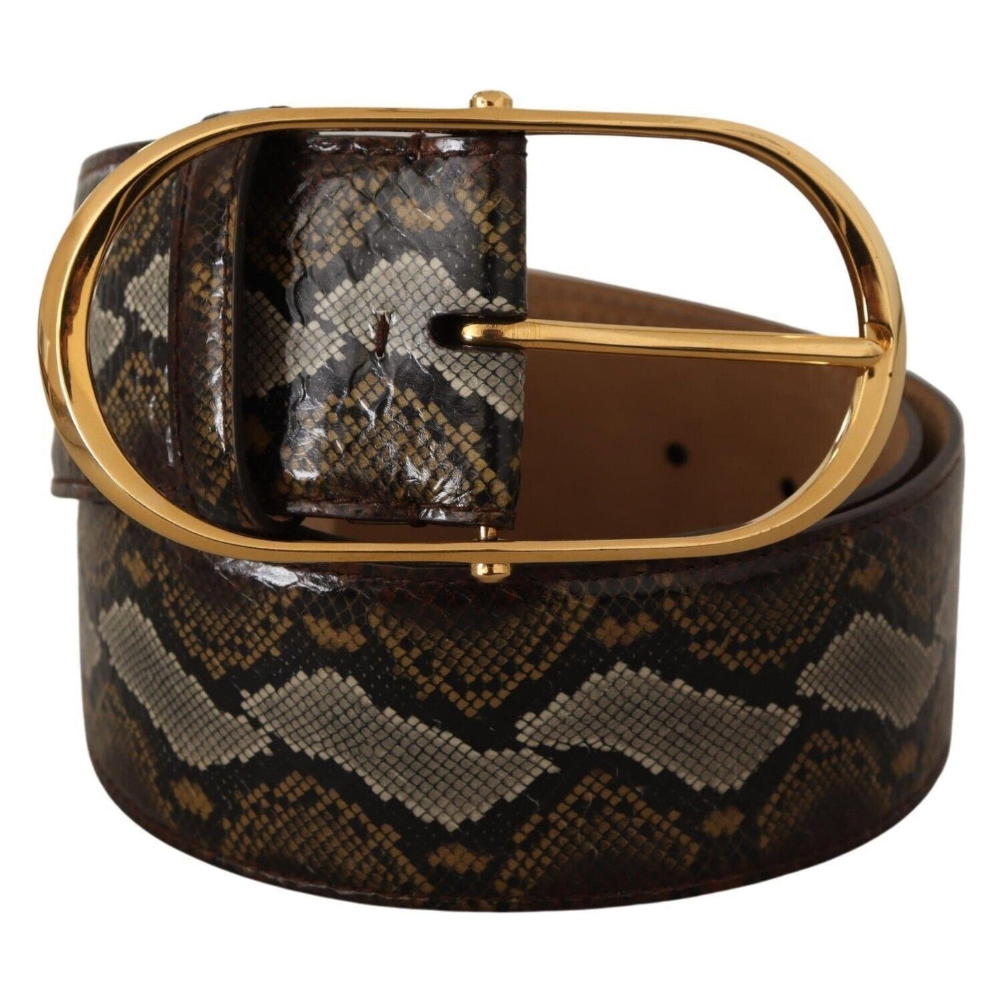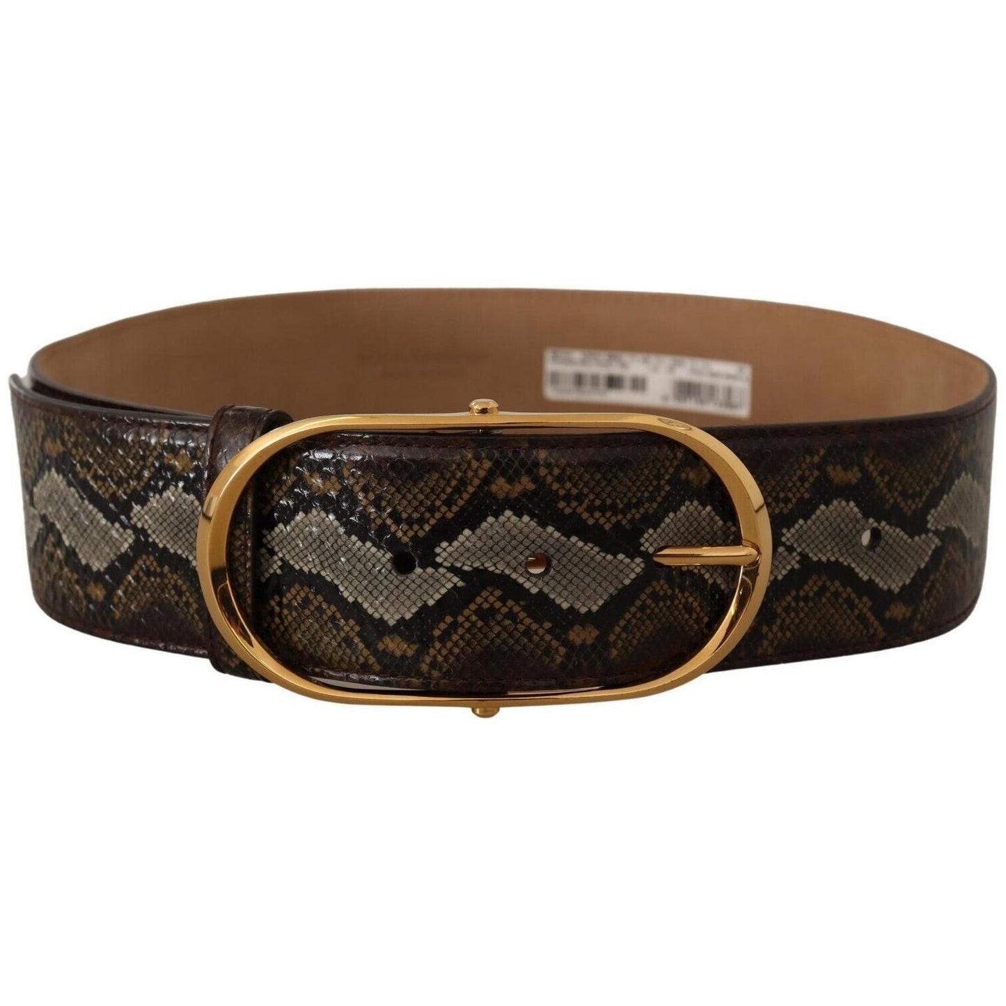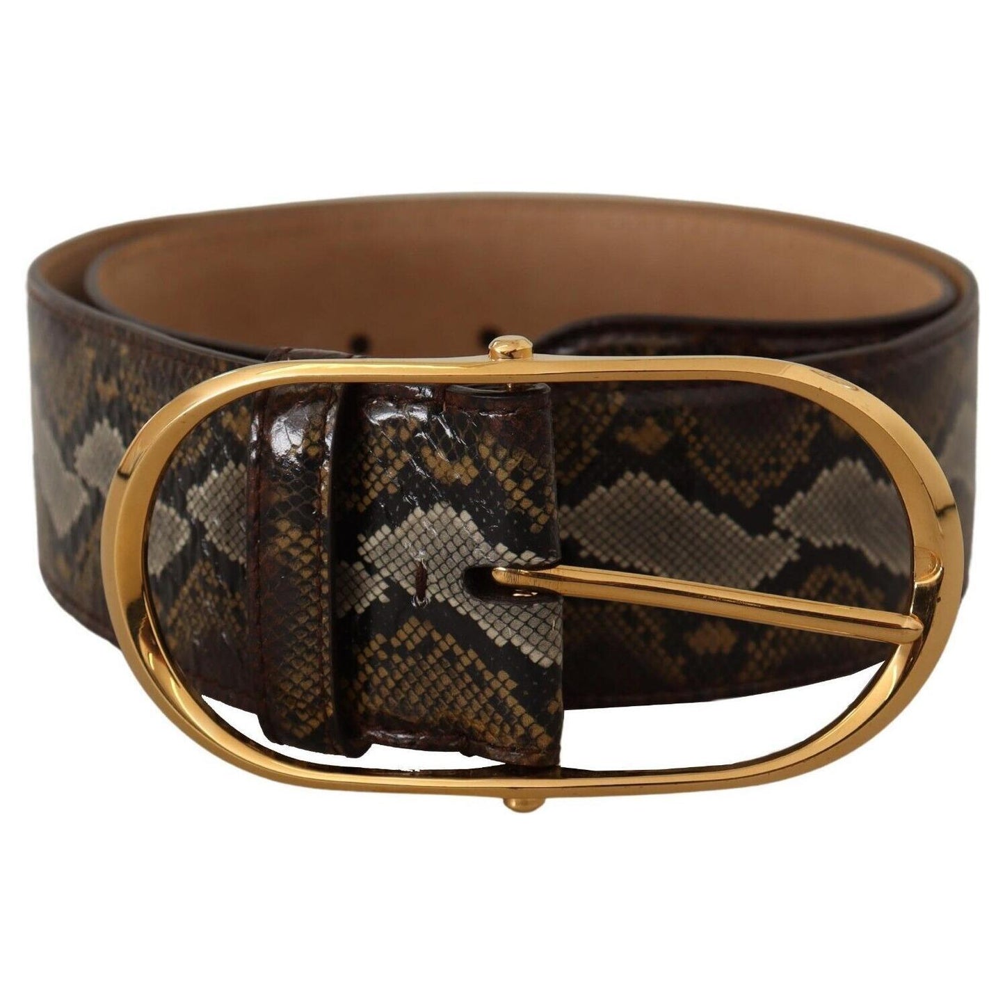 Dolce & Gabbana Brown Python Leather Gold Oval Buckle Belt