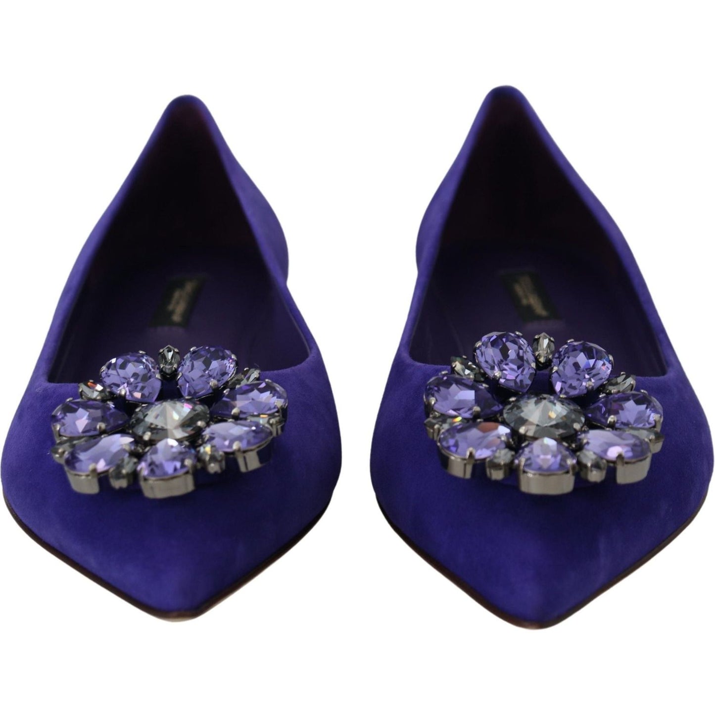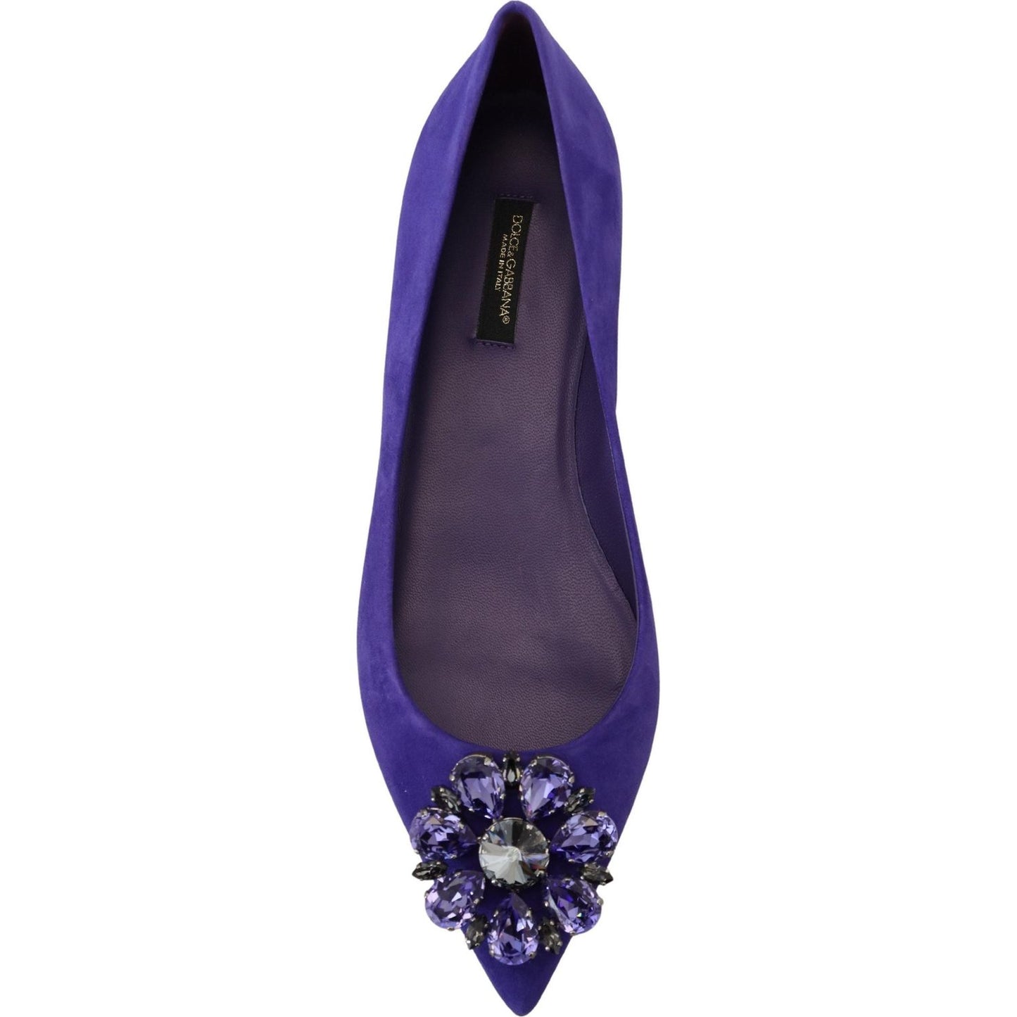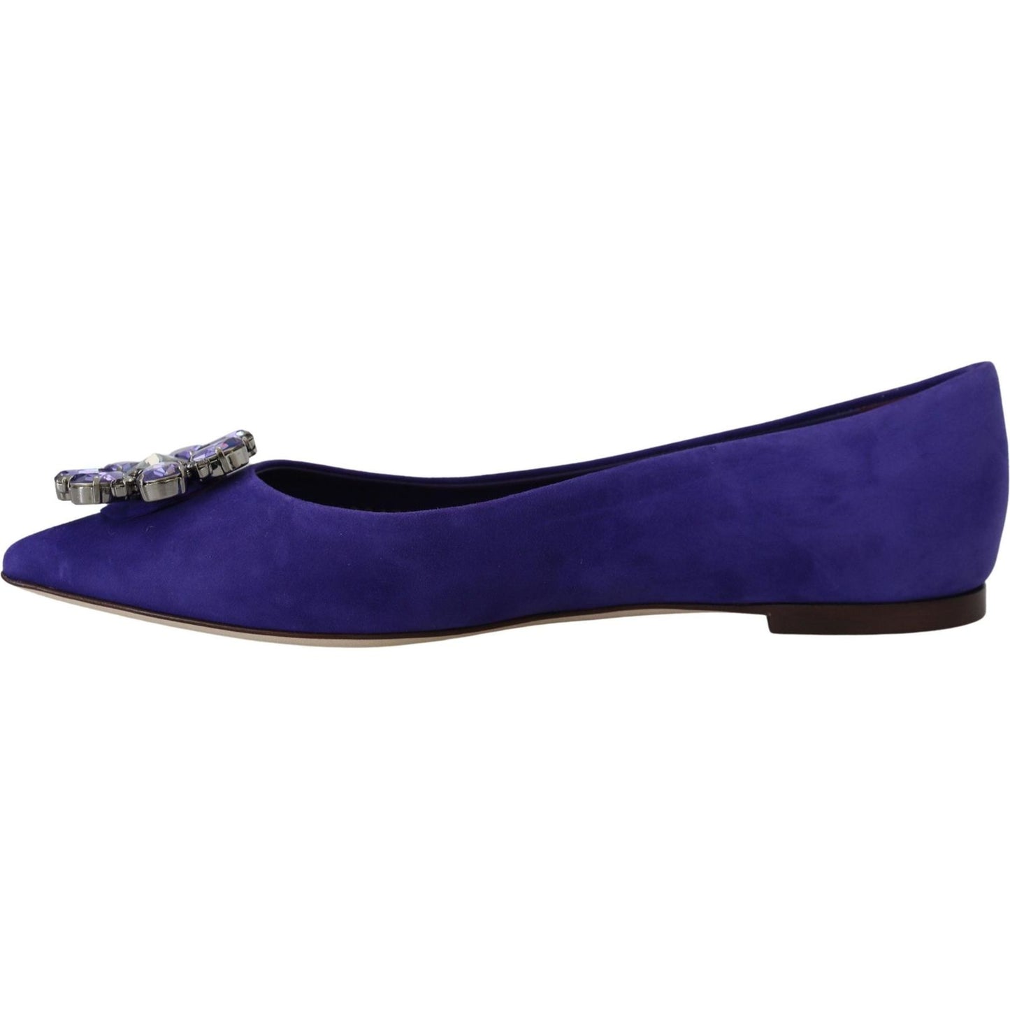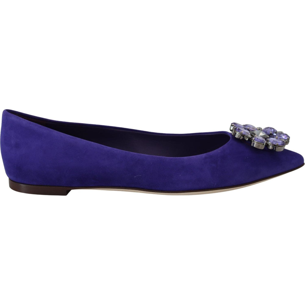 Gorgeous, brand new with tags 100% Authentic Dolce & Gabbana Flats Suede Shoes with embellished crystals featuring a pointed toe, slip on and leather sole.