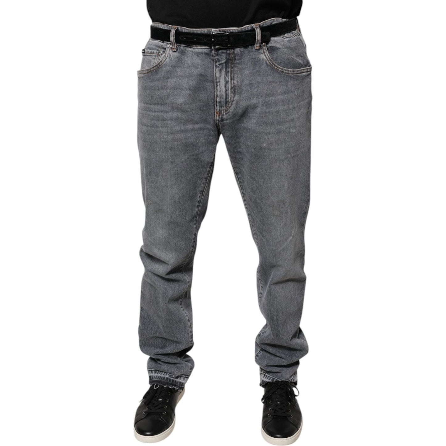 Dolce & Gabbana Gray Logo Cotton Stretch Skinny Denim Jeans