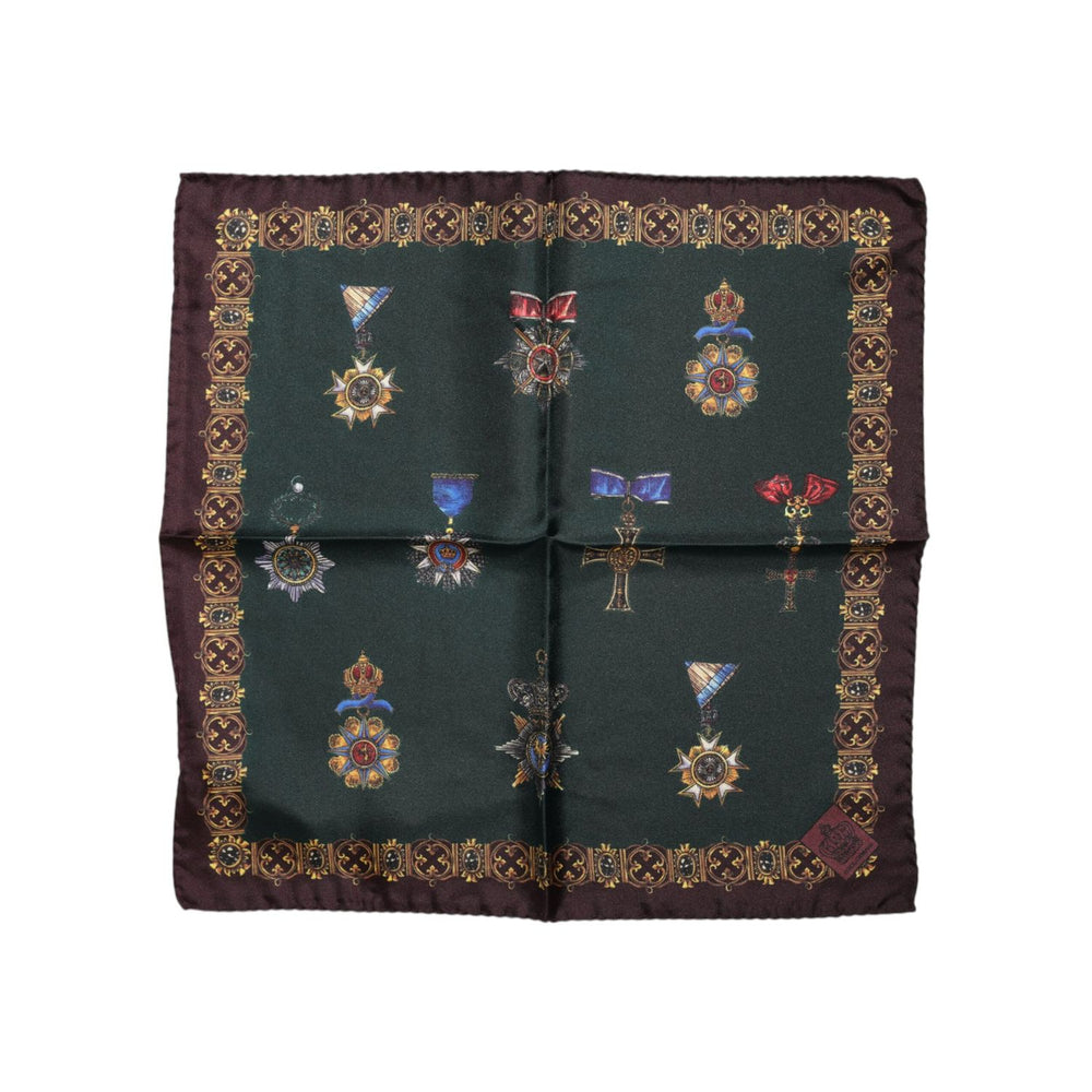 • Dolce & Gabbana Green Medals Silk Square Foulard Scarf