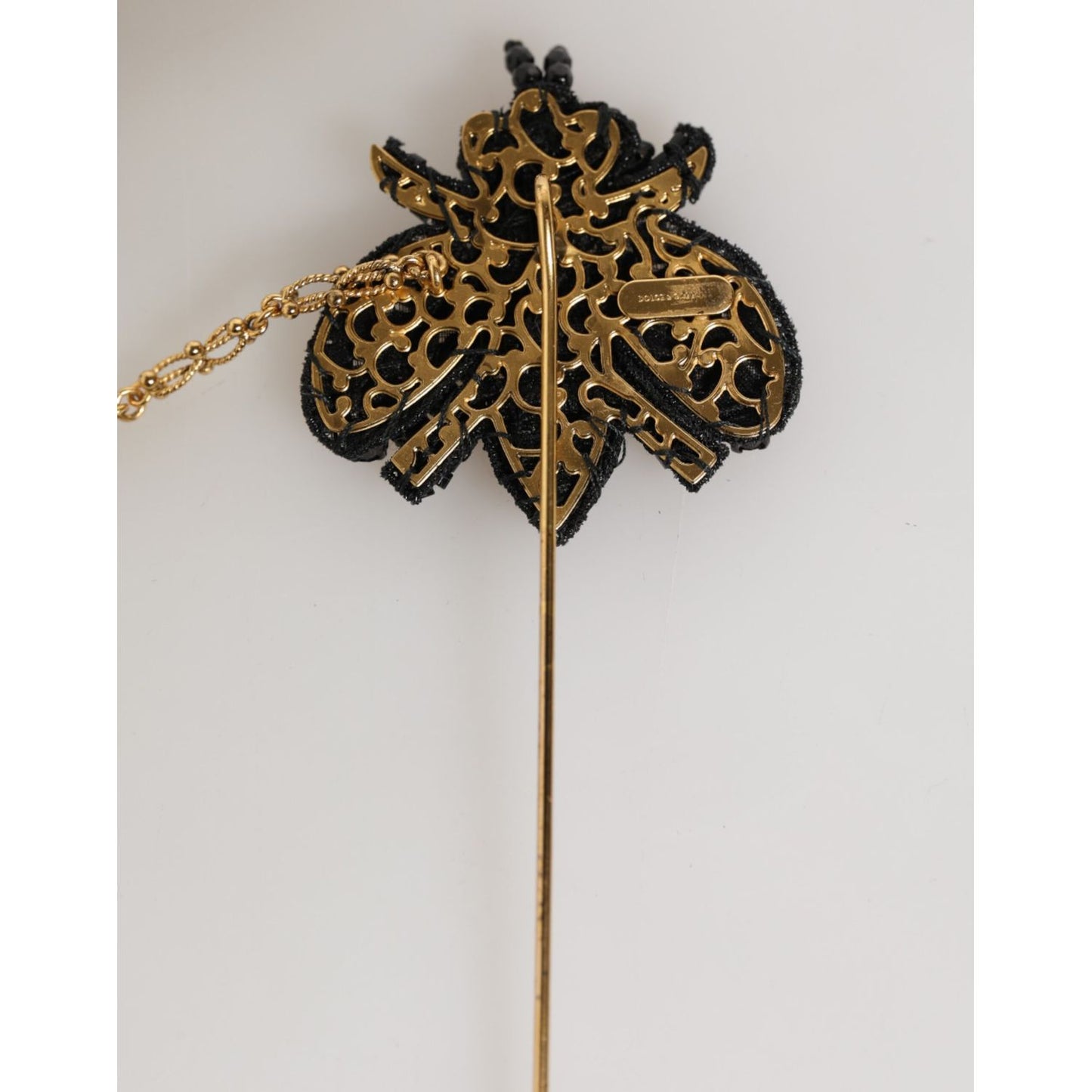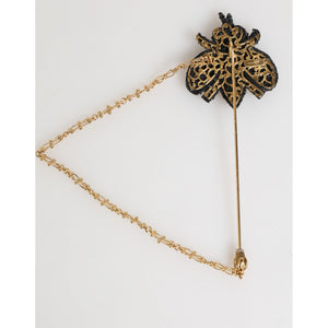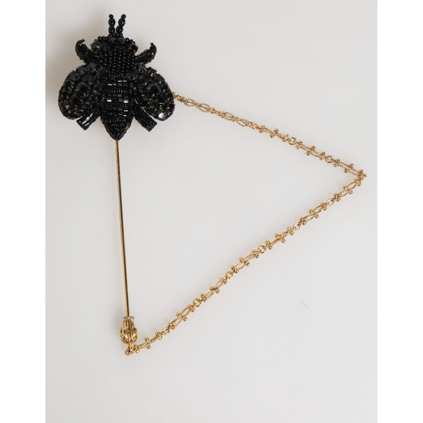 • Dolce & Gabbana Lapel Pin Gold Brass Black Crystal Bee Accessories Brooch