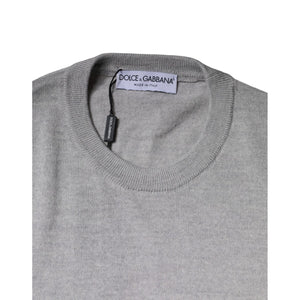 Dolce & Gabbana Light Gray Wool Crew Neck Pullover Sweater