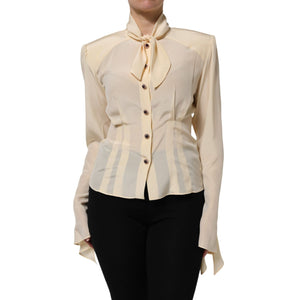 Dolce & Gabbana Light Yellow Ascot Collar Buttoned Blouse Top