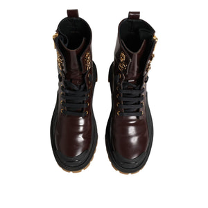 Dolce & Gabbana Maroon Leather Mid Calf Biker Boots Shoes